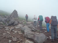 硫黄岳から硫黄岳山荘までは霧が濃く、道に迷ってしまいそうな所もありました。