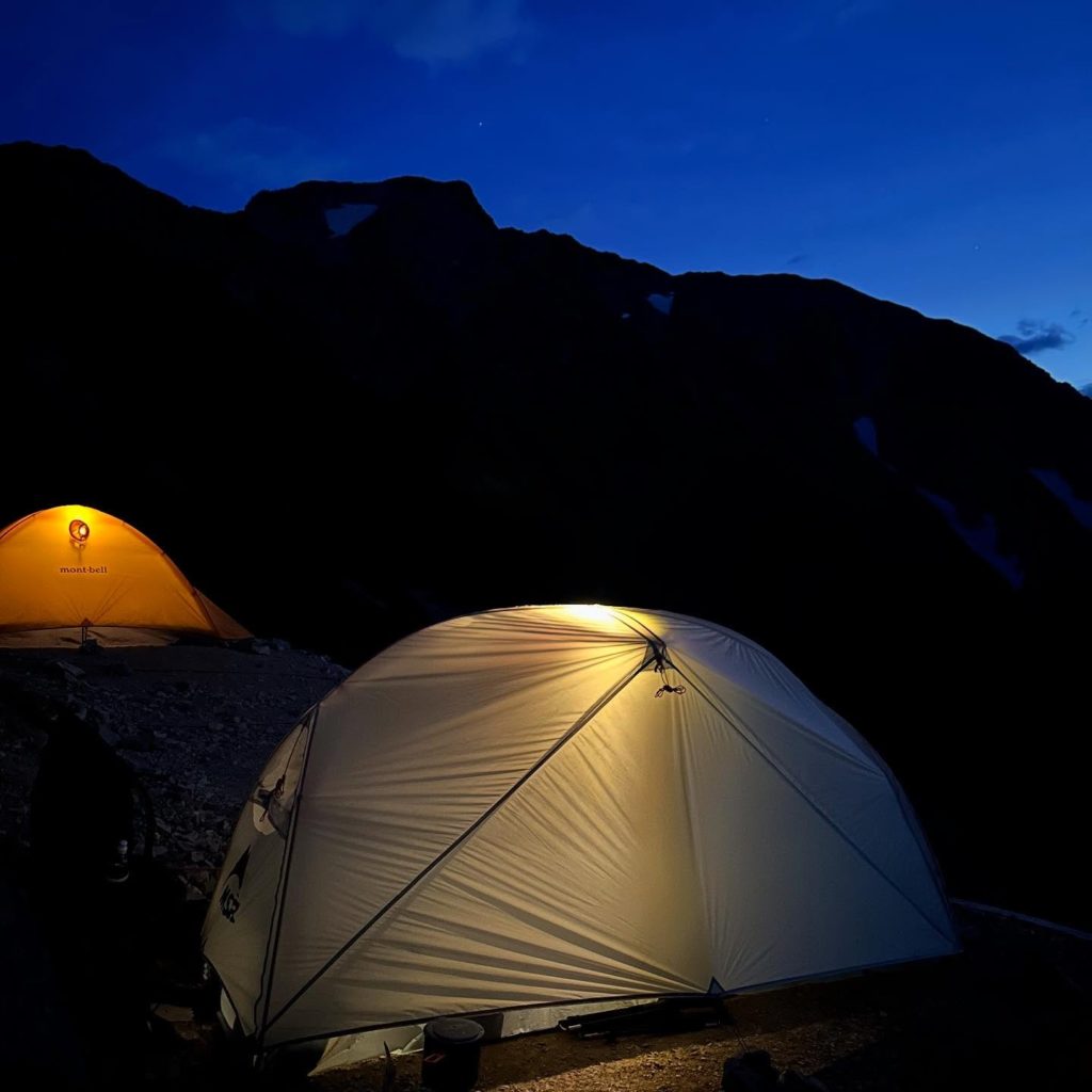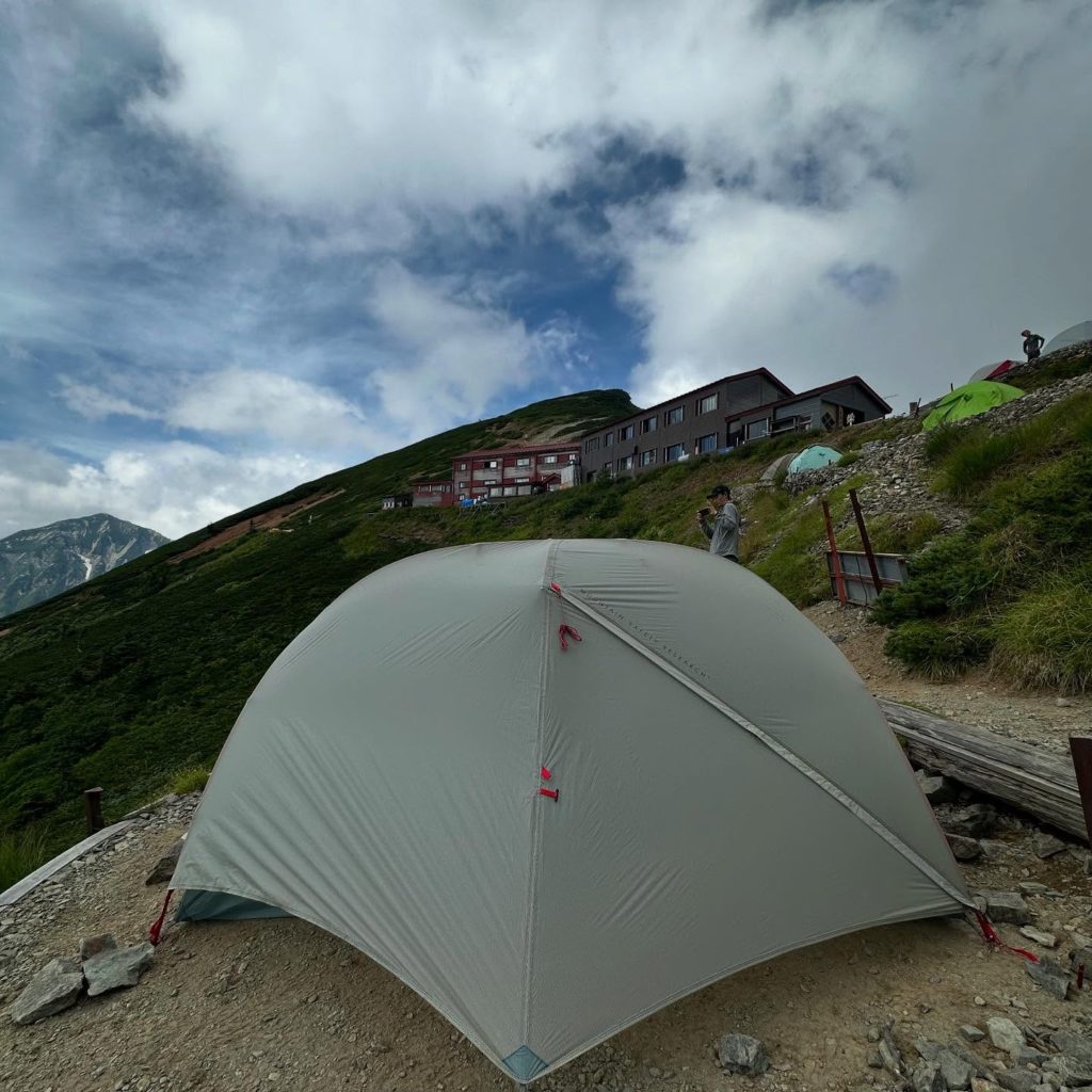 フライシートには大型の前室があり、中に入れたくないギアを収納できるフライシートの色は清潔感があり、洗練された印象を与え、シンプルながらもテント場で映える。天候が良ければ、フライシートをかけずに星空を眺めながら気持ちよく寝ることもできる。