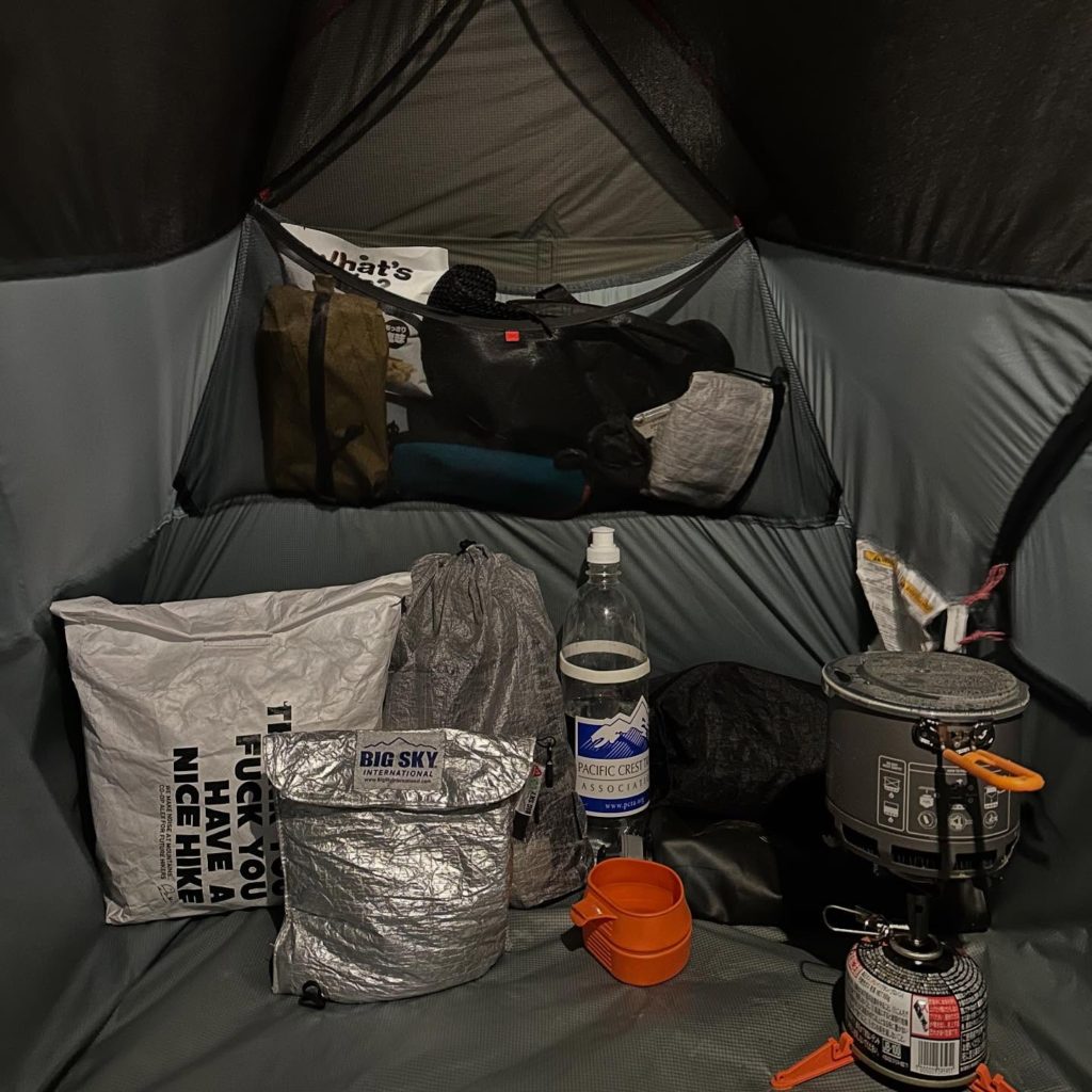 室内はフレームを交差させるハブの位置が高くなったため、身長177cmの私が入ってもヘッドスペースに十分な余裕がある。テント内の高さ99cmあり内部空間は1人用サイズとしてはかなり広くてストレスなくテント生活を過ごせた。