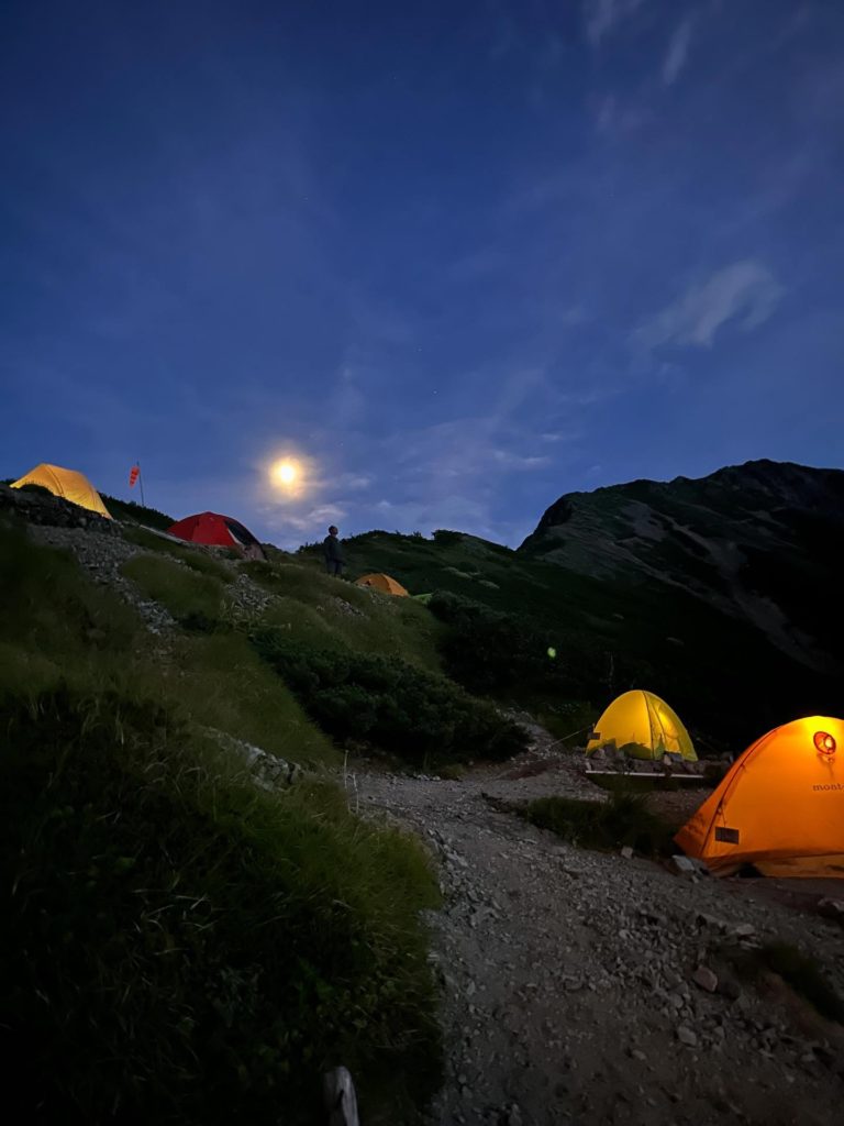 五竜山荘にはテント場があり、30張まで収容可能(テント泊の料金はテント1張1名の場合2,000+2,000=4,000円)