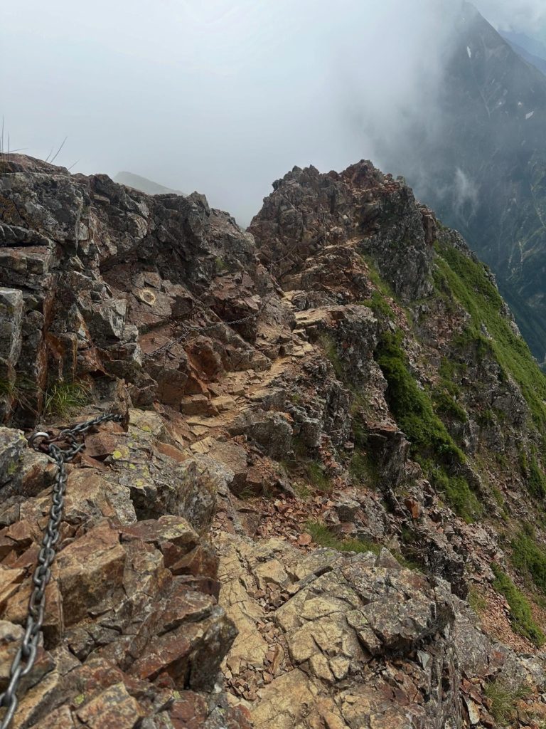 八峰キレットは、北アルプス後立山連峰の五竜岳と鹿島槍ヶ岳間にある難所であり、強風の影響を受けやすいため残念だが遠見尾根を下山することに。