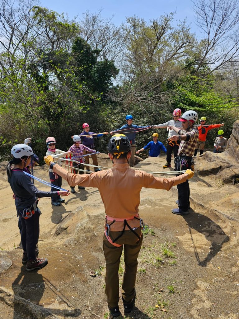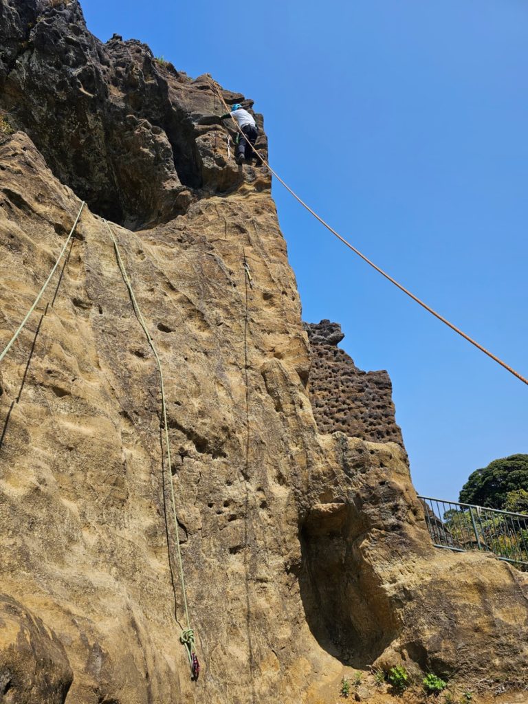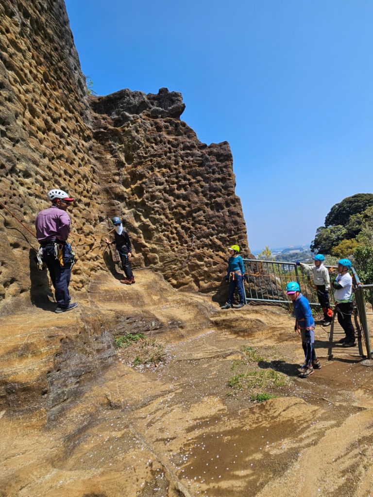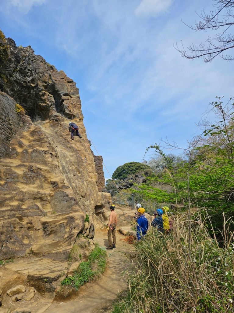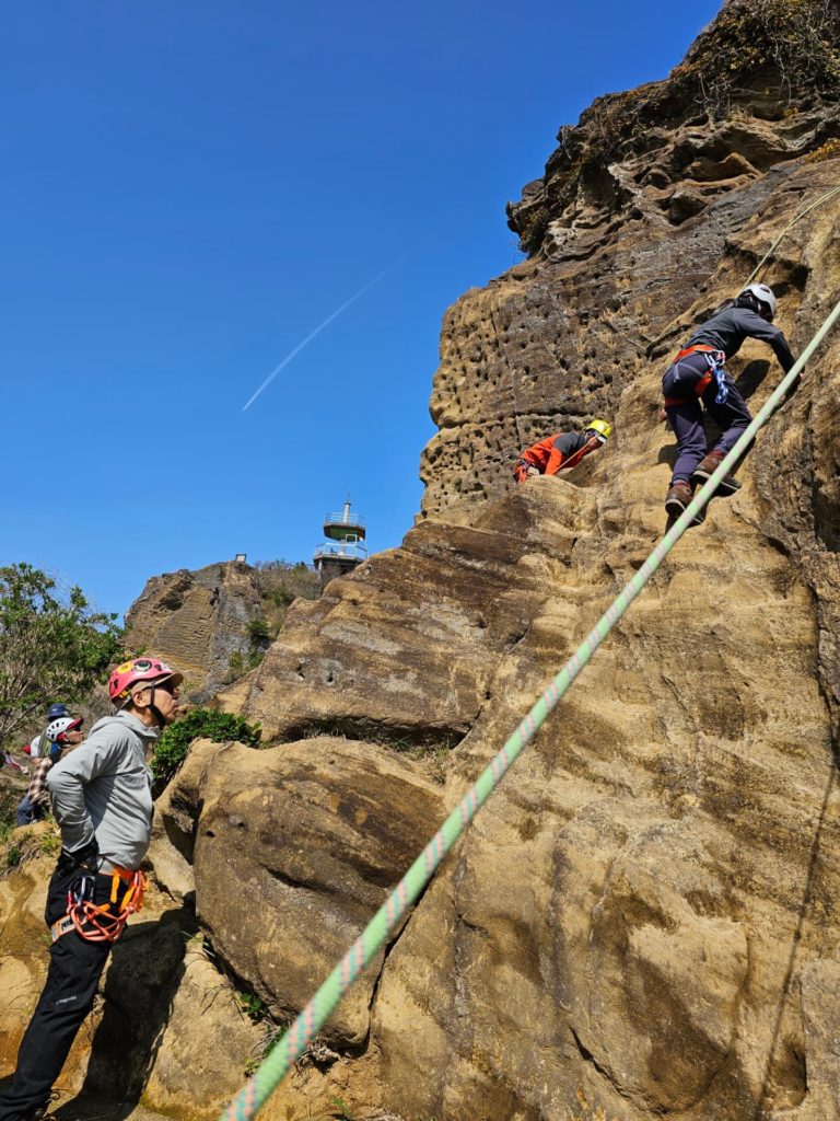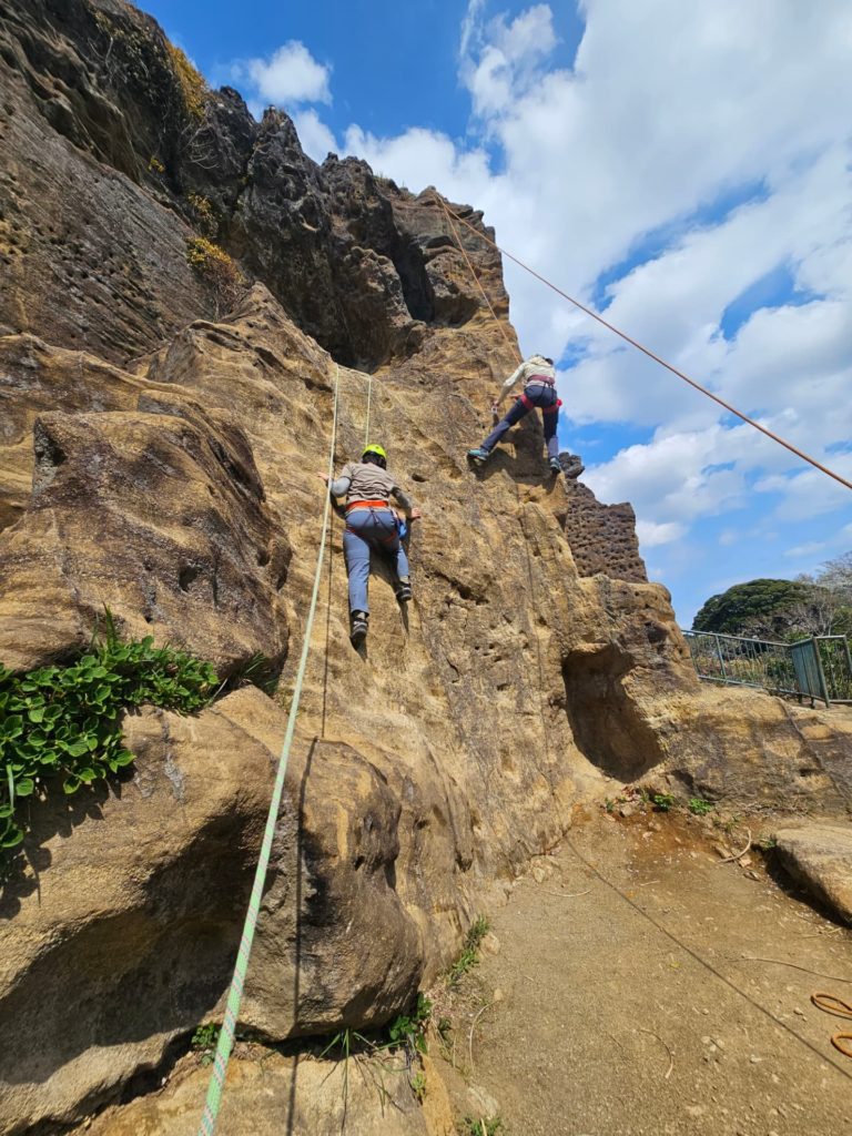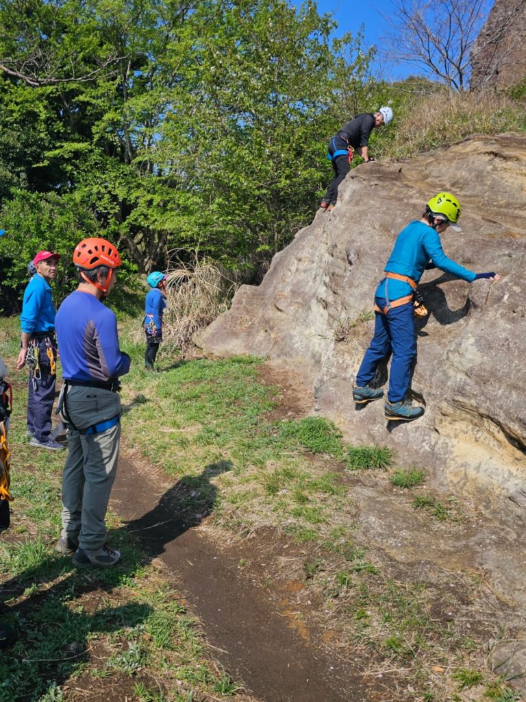 昼食を取った後はさらに高さを出した岩場での講習とです。