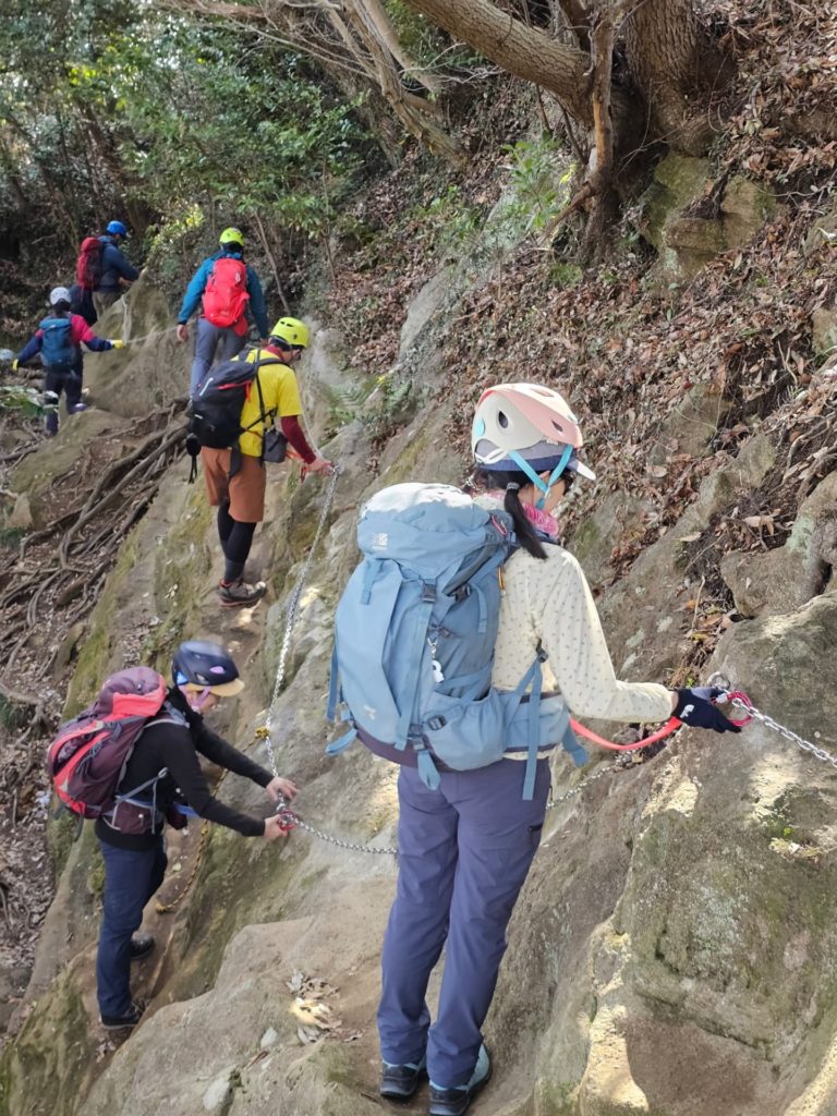 帰りは尾根道を下山し、登山道中のクサリ場を通過体験しながら帰路に着きました。