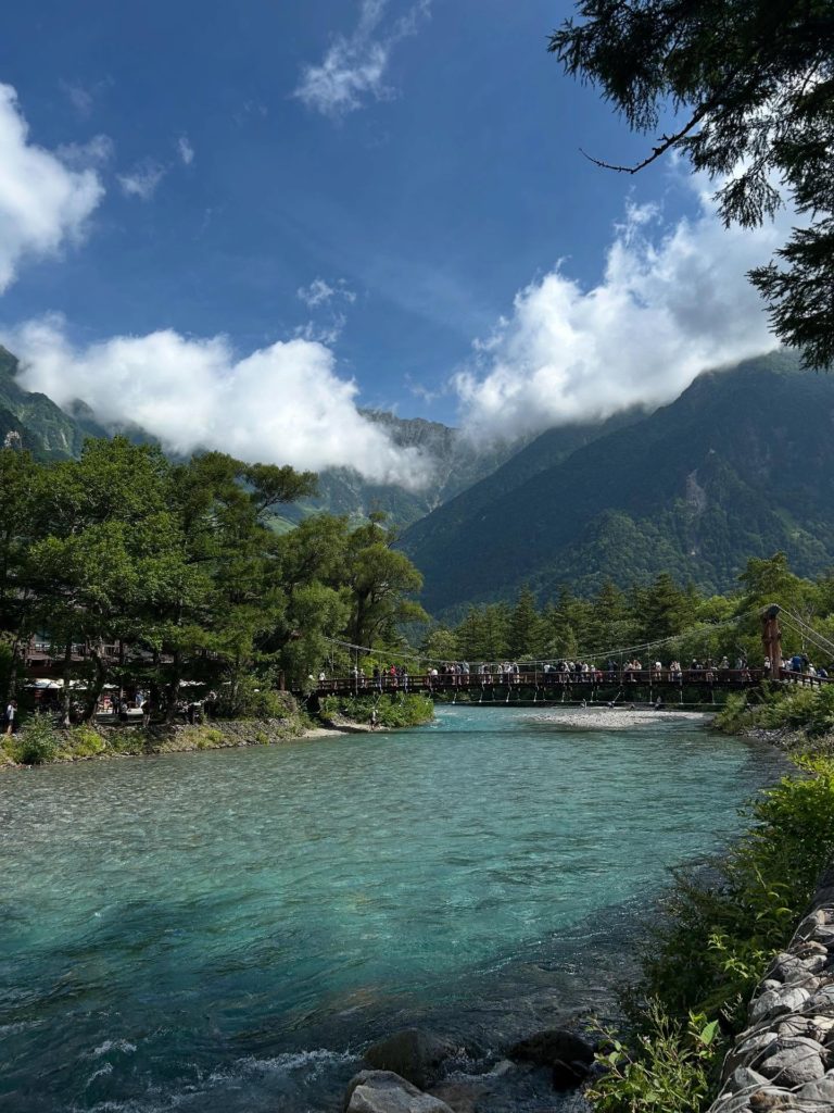 入山日は、沢渡大橋の駐車場から上高地行きのバスに乗り、