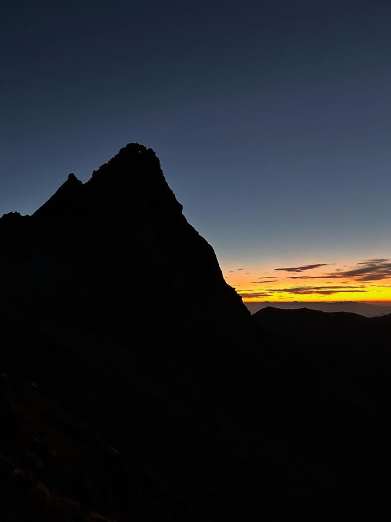 最終日。日の出前の穂先に光るヘッドライトの光。