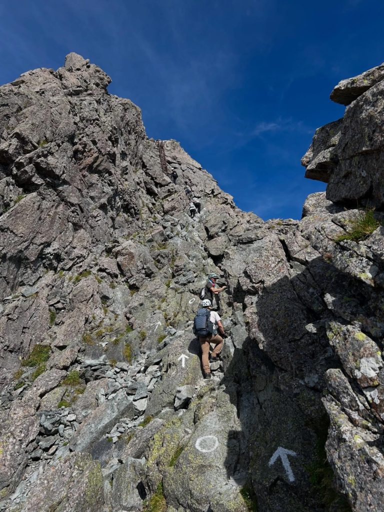矢印に従って三点確保で鎖や梯子を登っていきます。前の人との距離に気をつけて最後の梯子を登りきると…