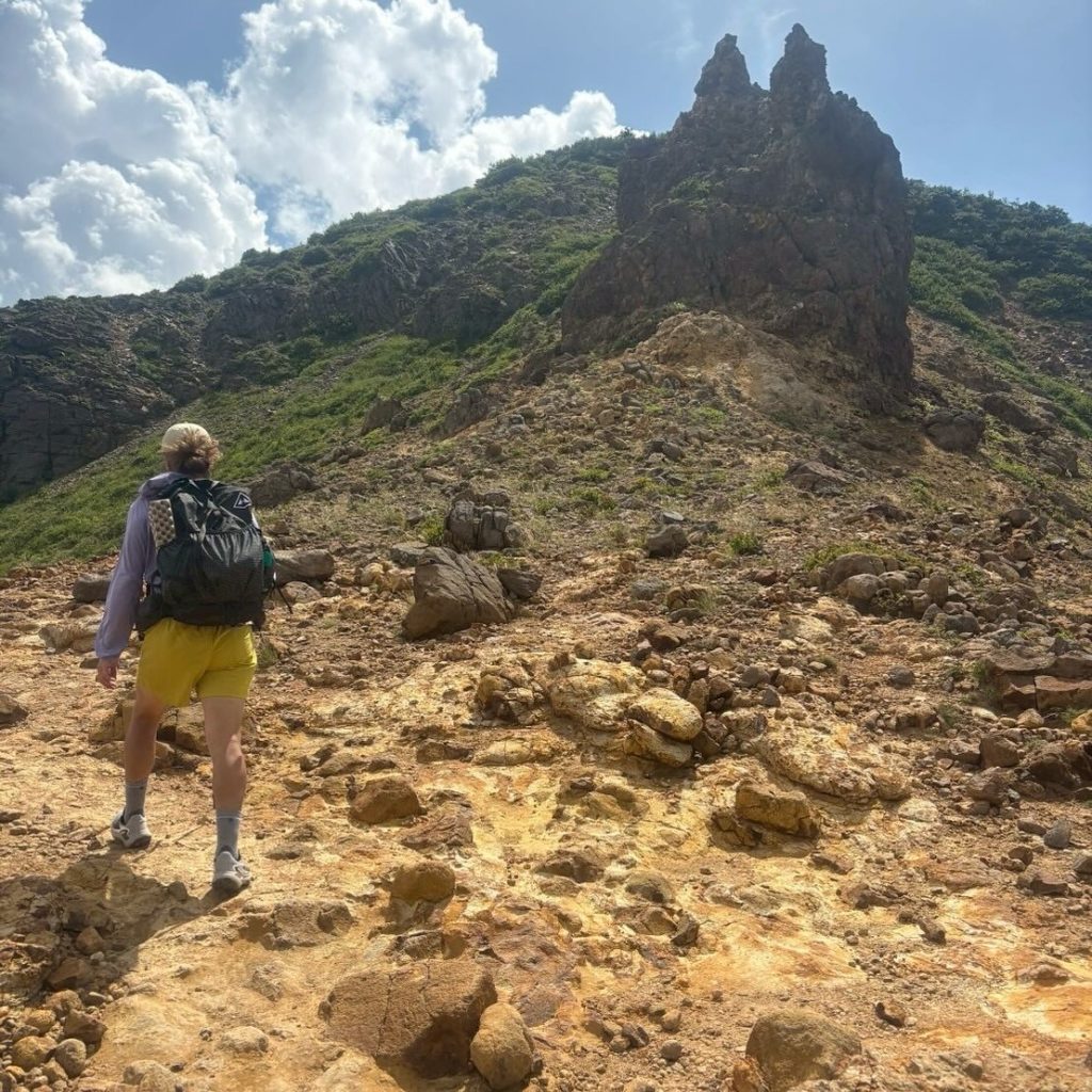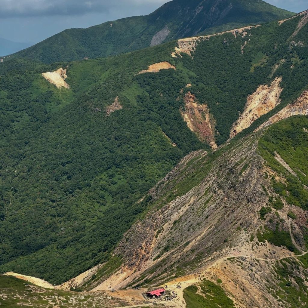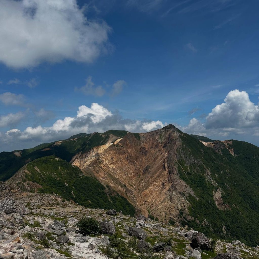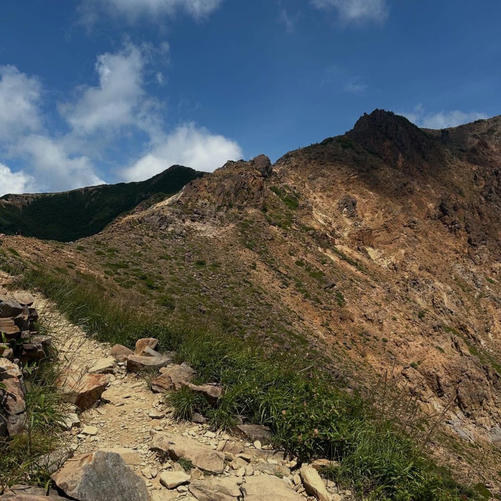 今回はロープウェイを利用して茶臼岳に登り、そこから朝日岳まで縦走するルートへ。那須岳の最高峰である百名山のひとつ三本槍岳はまた次回のお楽しみ。