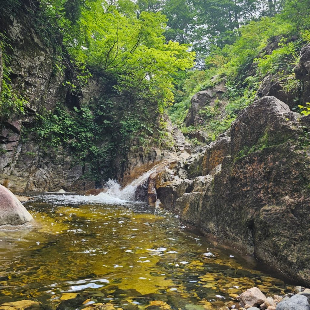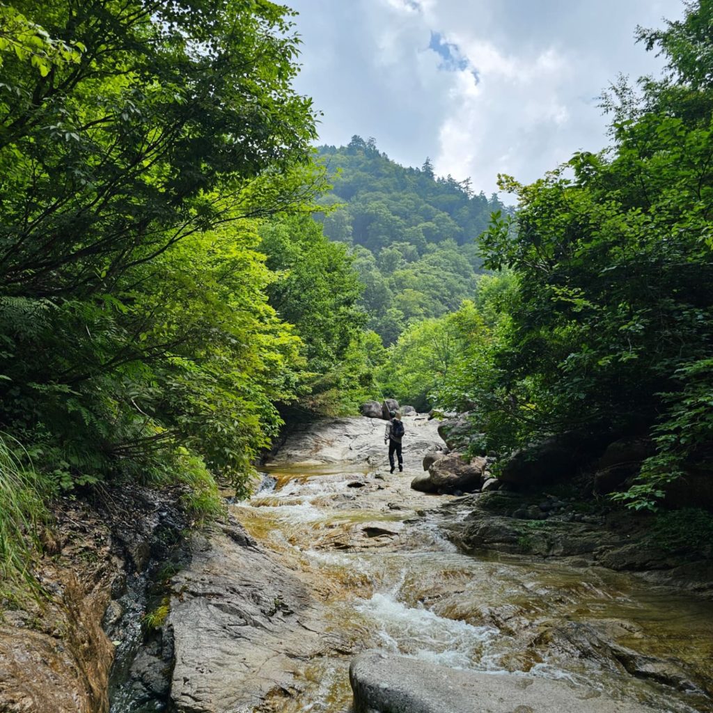 急に開ける滑床も、振り返った先のゴルジュ越しの積乱雲も越えなきゃいけない滝も釜もいいんです!