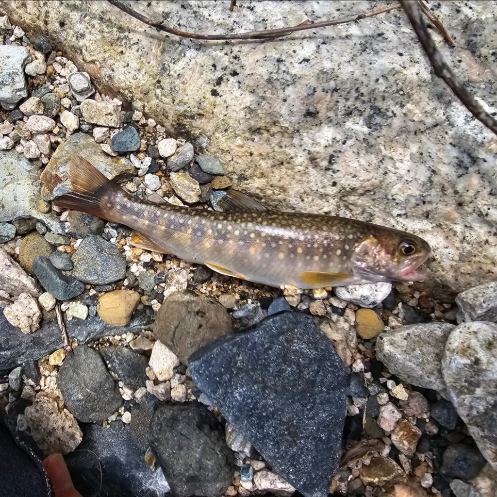 天カラに飛びついてきたイワナのお腹はぱんぱん。