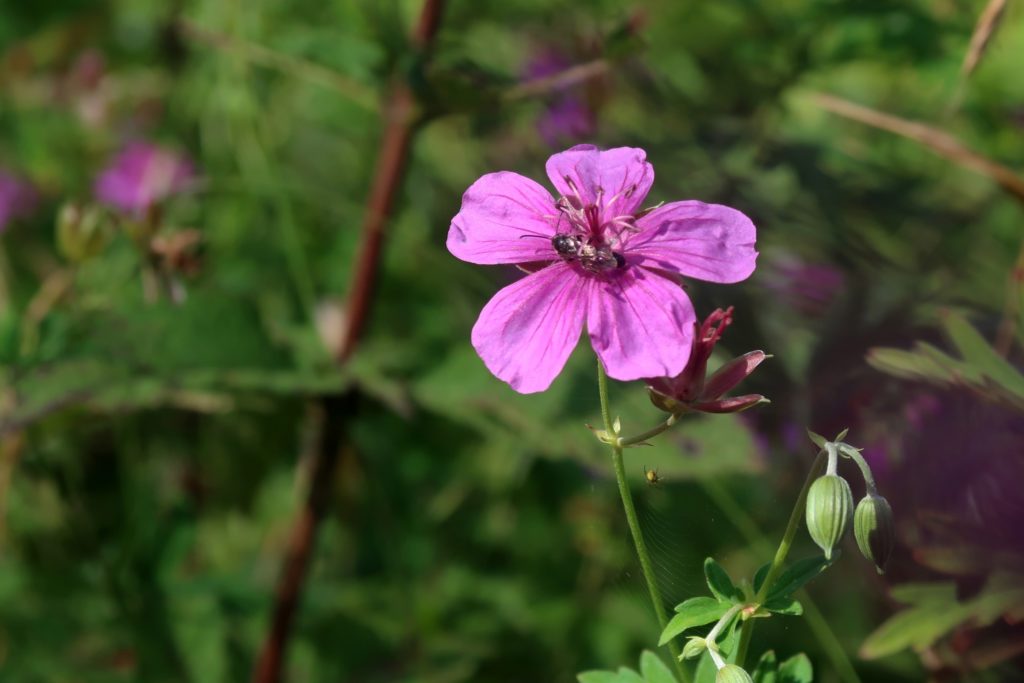 ピンク色系 シモツケソウ、アザミ、ハクサンフウロ