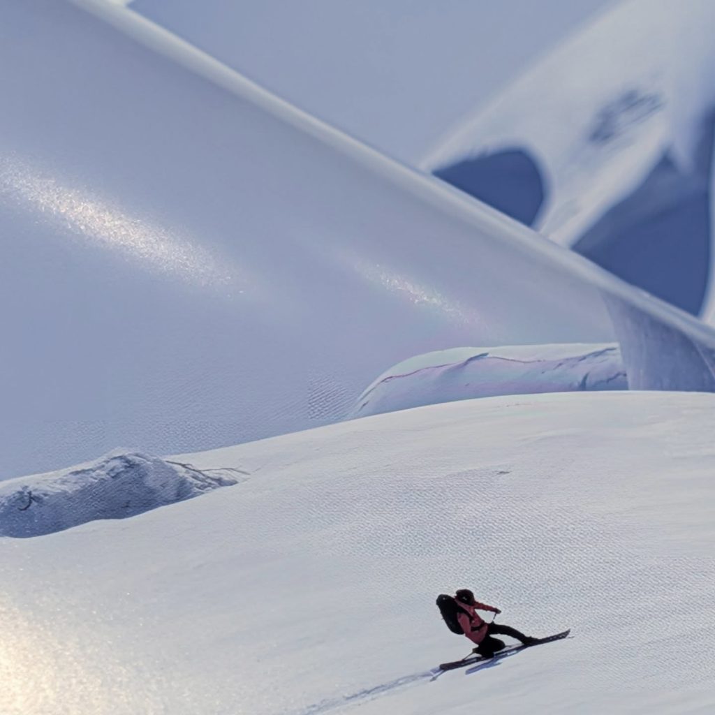 静かな雪の世界に、自分のラインだけが残っていく——そんな時間を切り取ってもらえた一枚です。
