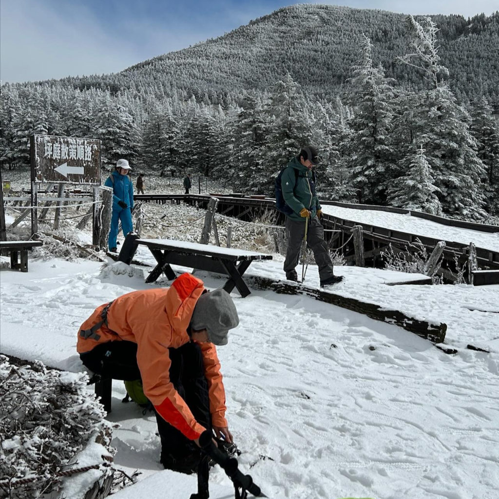 早速準備して来たチェーンアイゼンを付け、手袋をして、雪山対応をしっかりとして出発