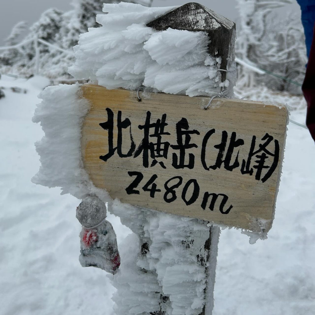 雪質はさらさら、北横岳山頂にはかわいらしいエビのしっぽ