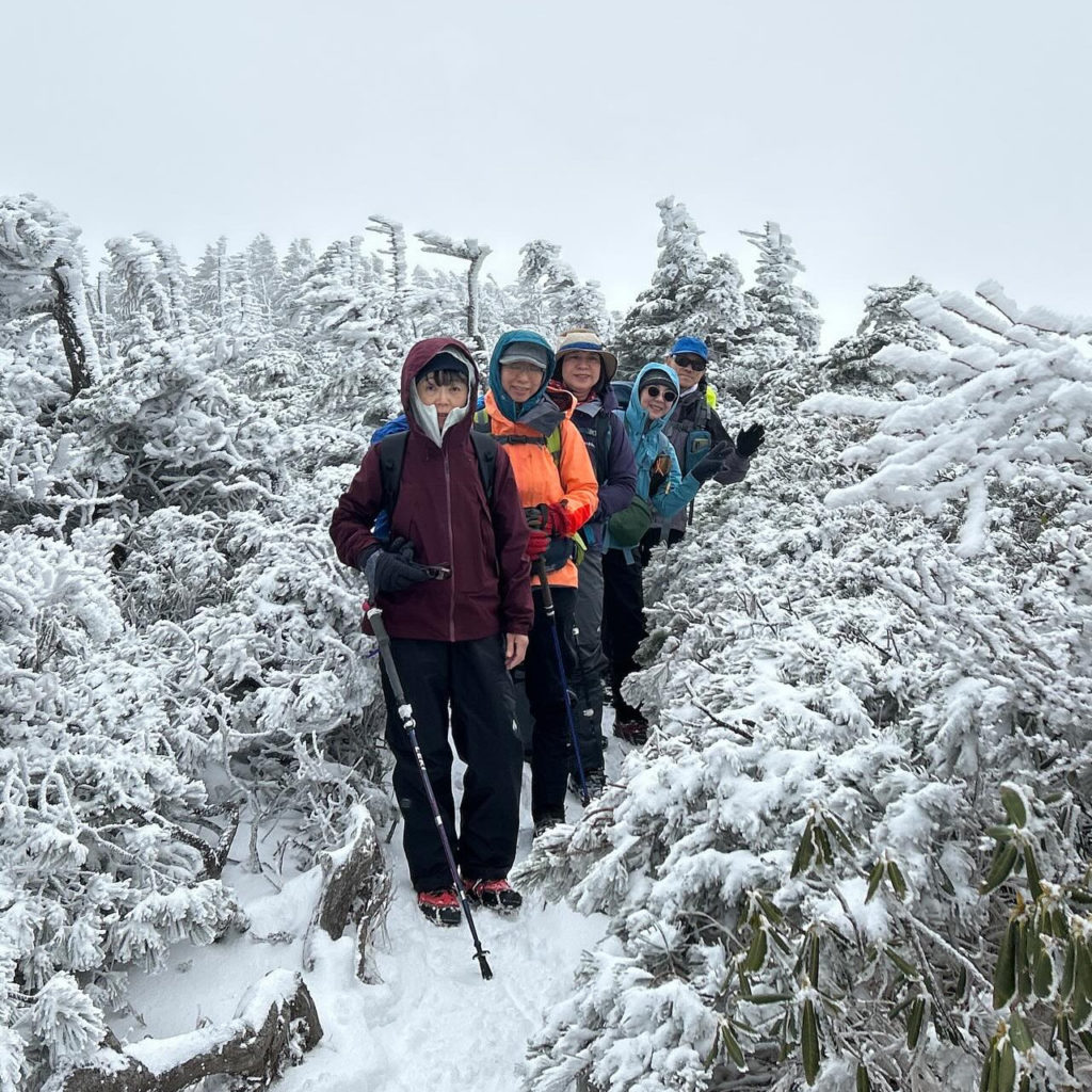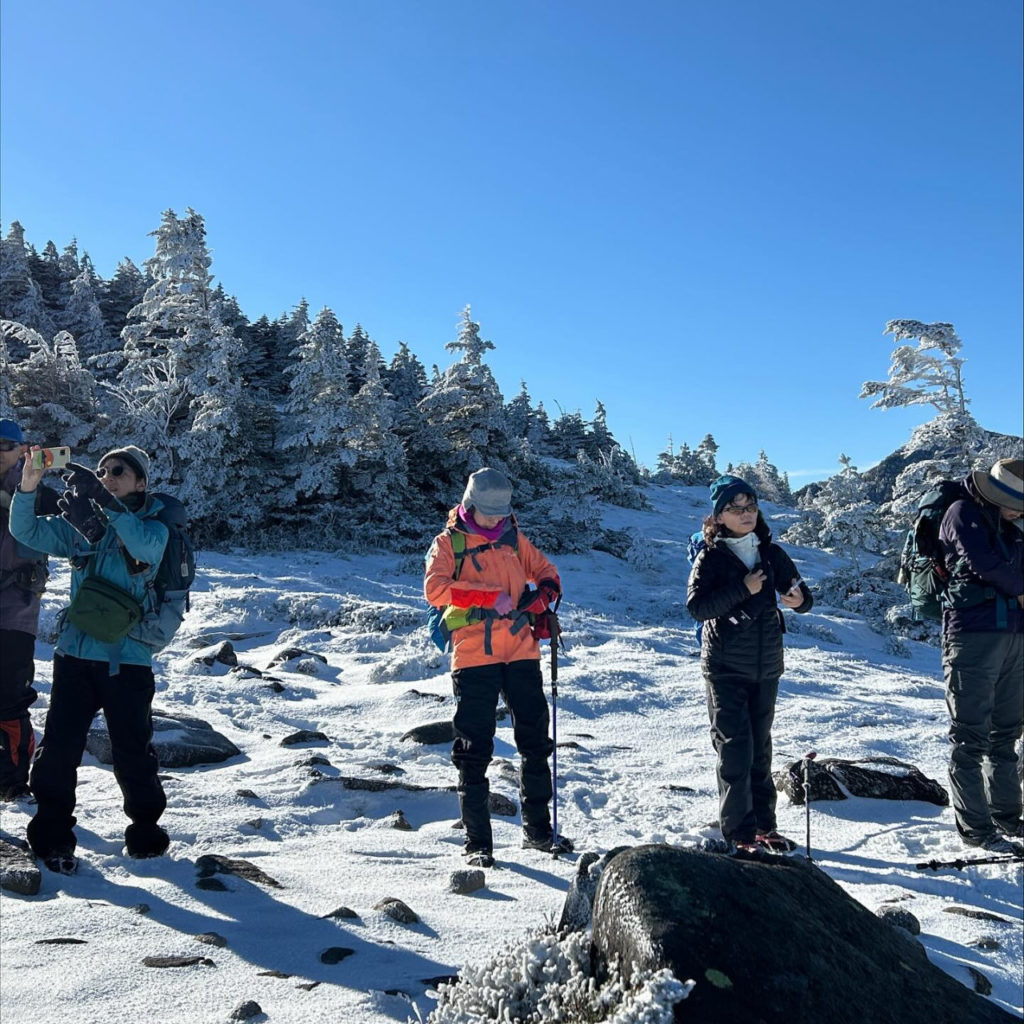 雪山風景を楽しんだ後、双子池ヒュッテに向かって出発。