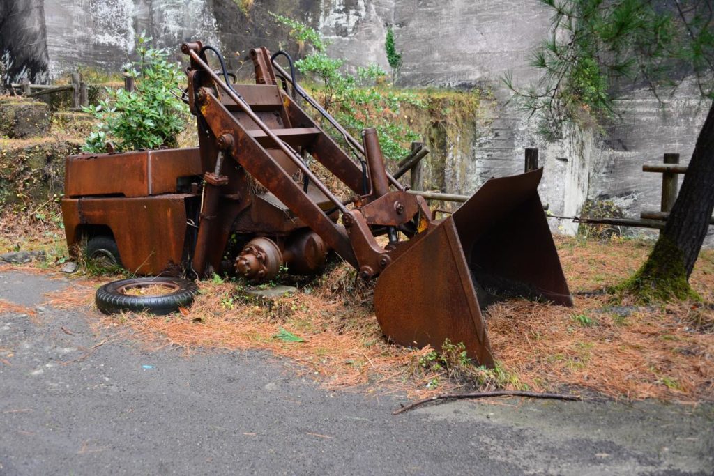 石切り場の壮大な壁、石切りに使用していた機械・・・