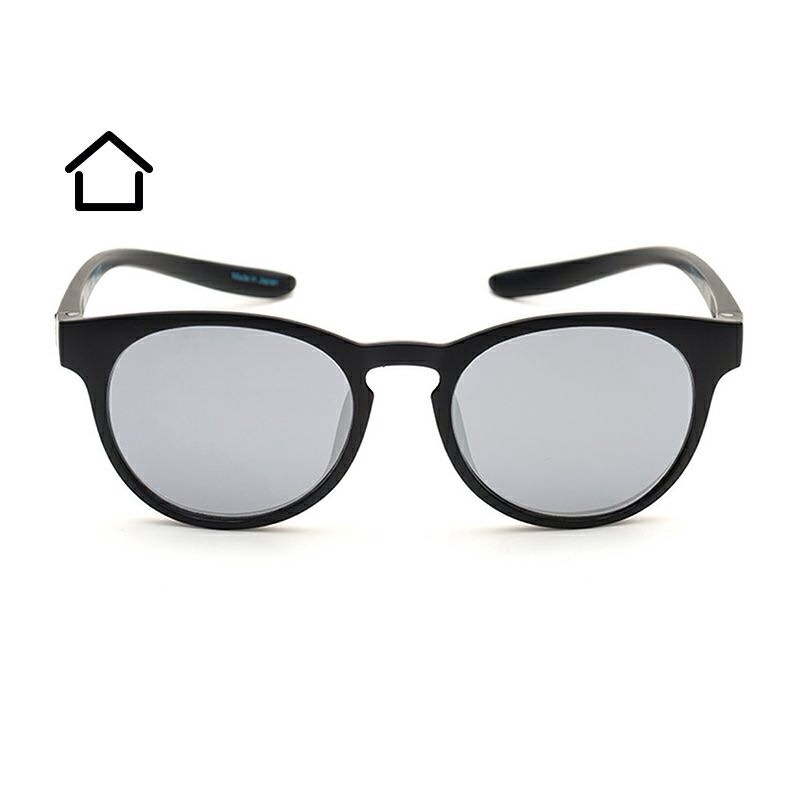 薄いグレーから濃いグレーへとカラーコントロール(調光)されるレンズは、インドア/アウトドアを問わずオールデイの使用が可能です。